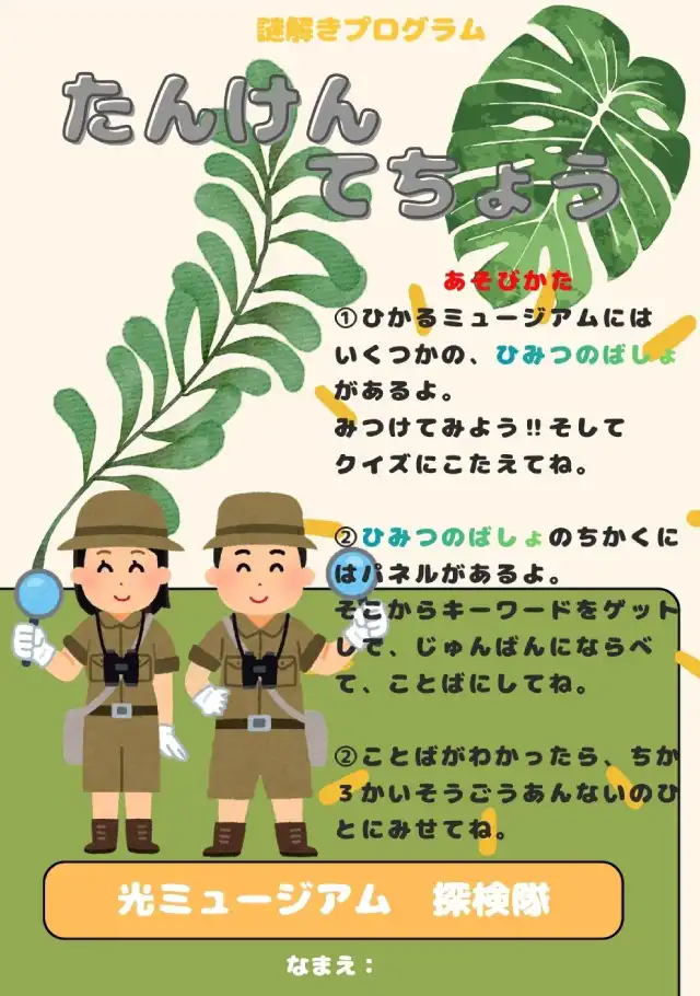 謎を解きながら館内をまわる「謎解きチャレンジ」プログラムです。謎を解いてゴールするとプレゼントがもらえます!