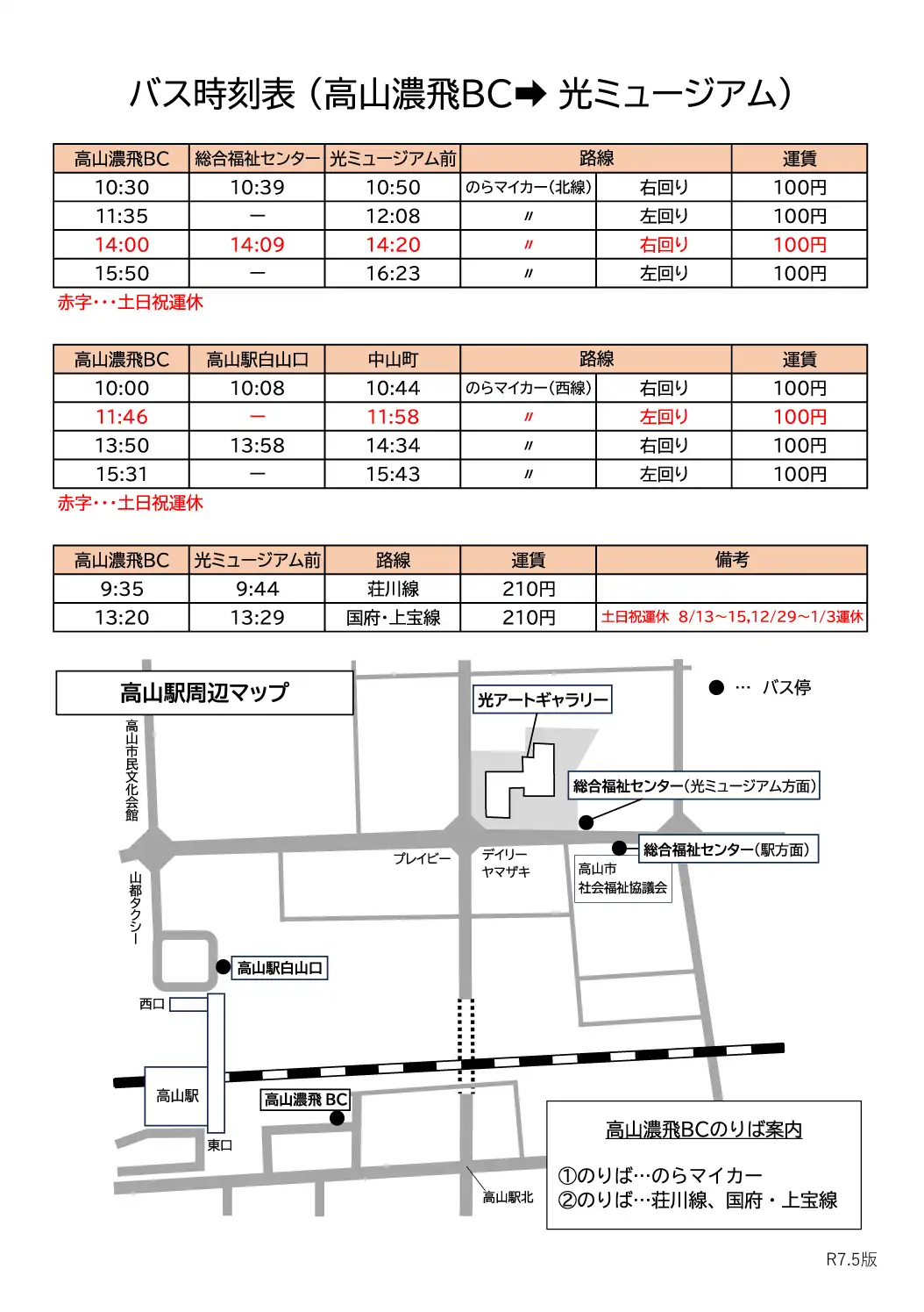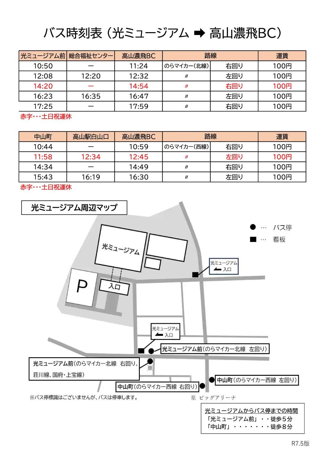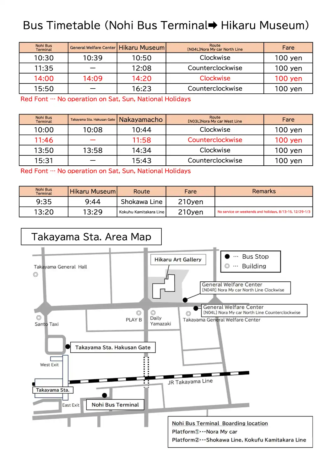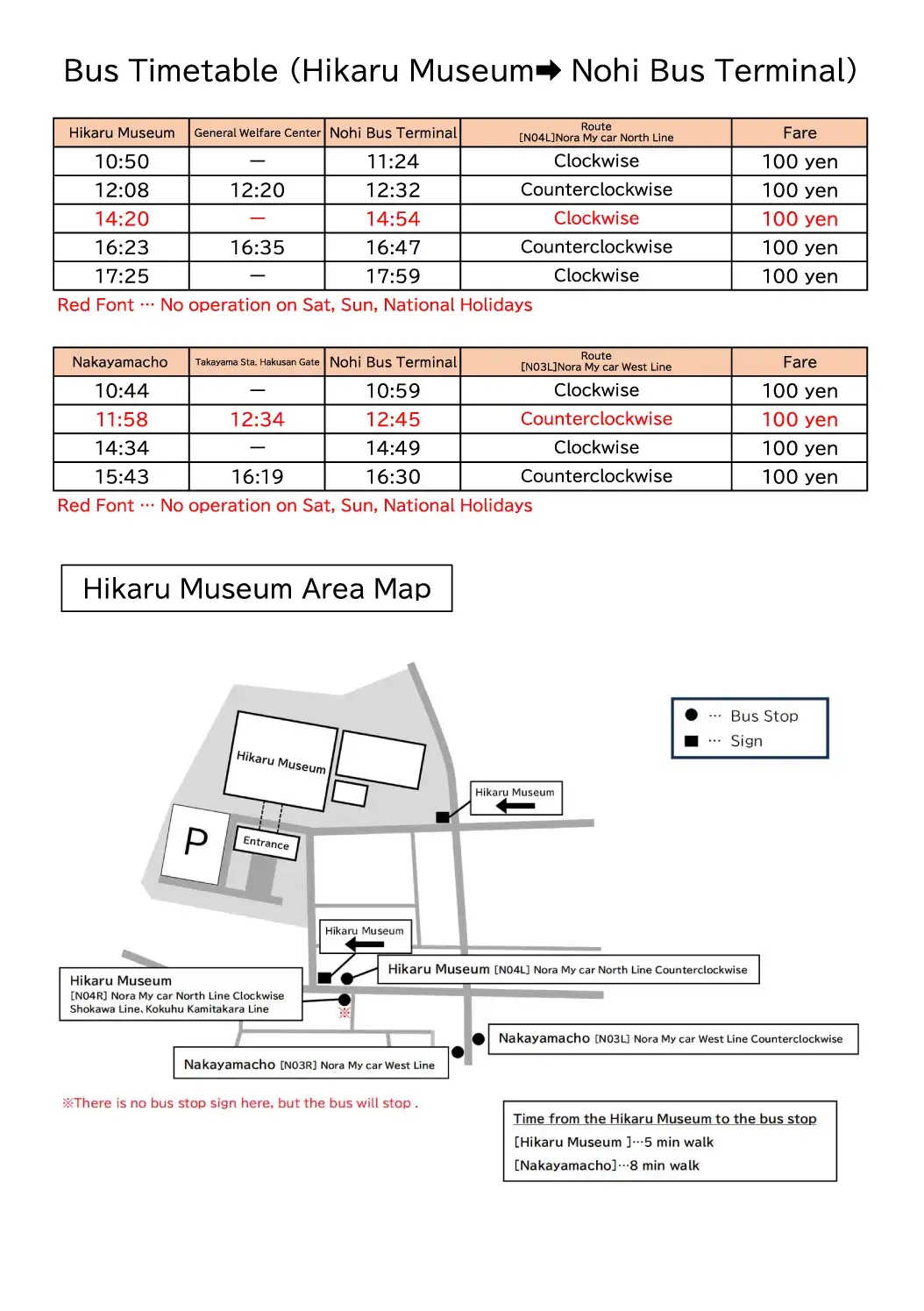 Bus Timetable (Nohi Bus Terminal➡ Hikaru Museum)(PDF)