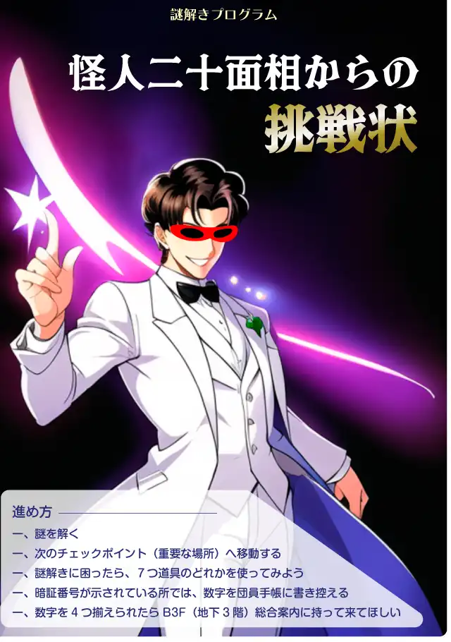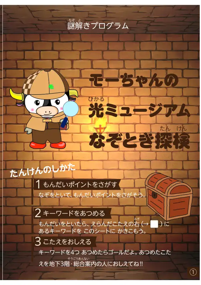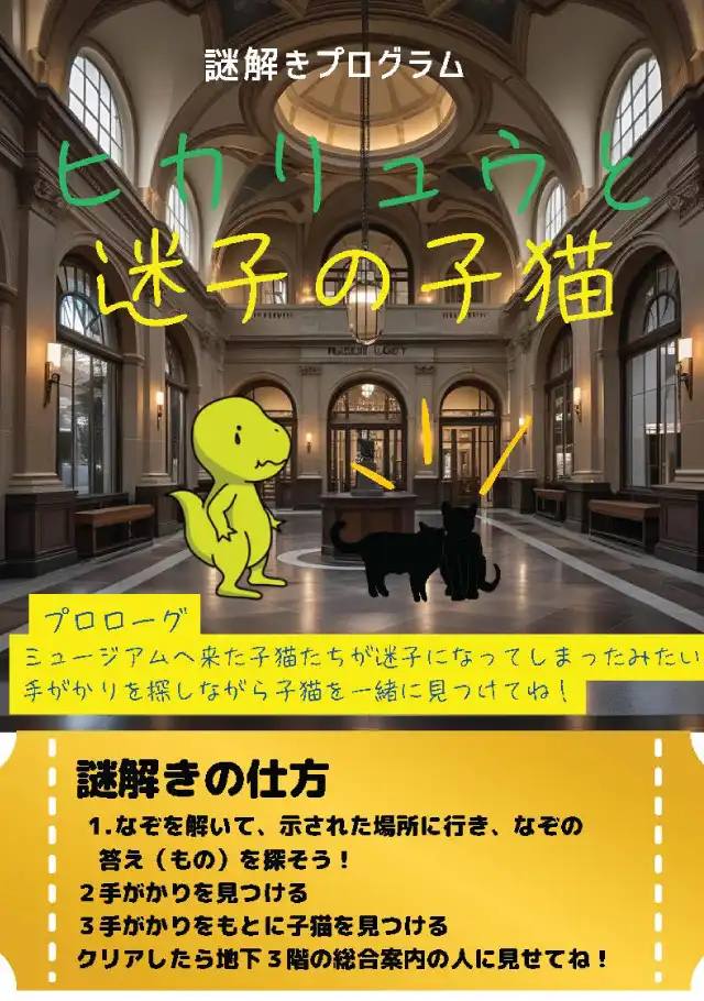 謎を解きながら館内をまわる「謎解きチャレンジ」プログラムです。謎を解いてゴールするとプレゼントがもらえます!